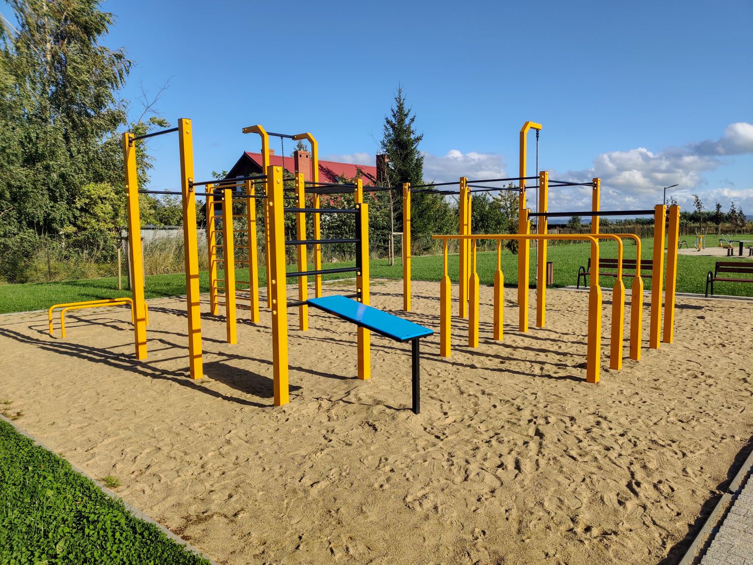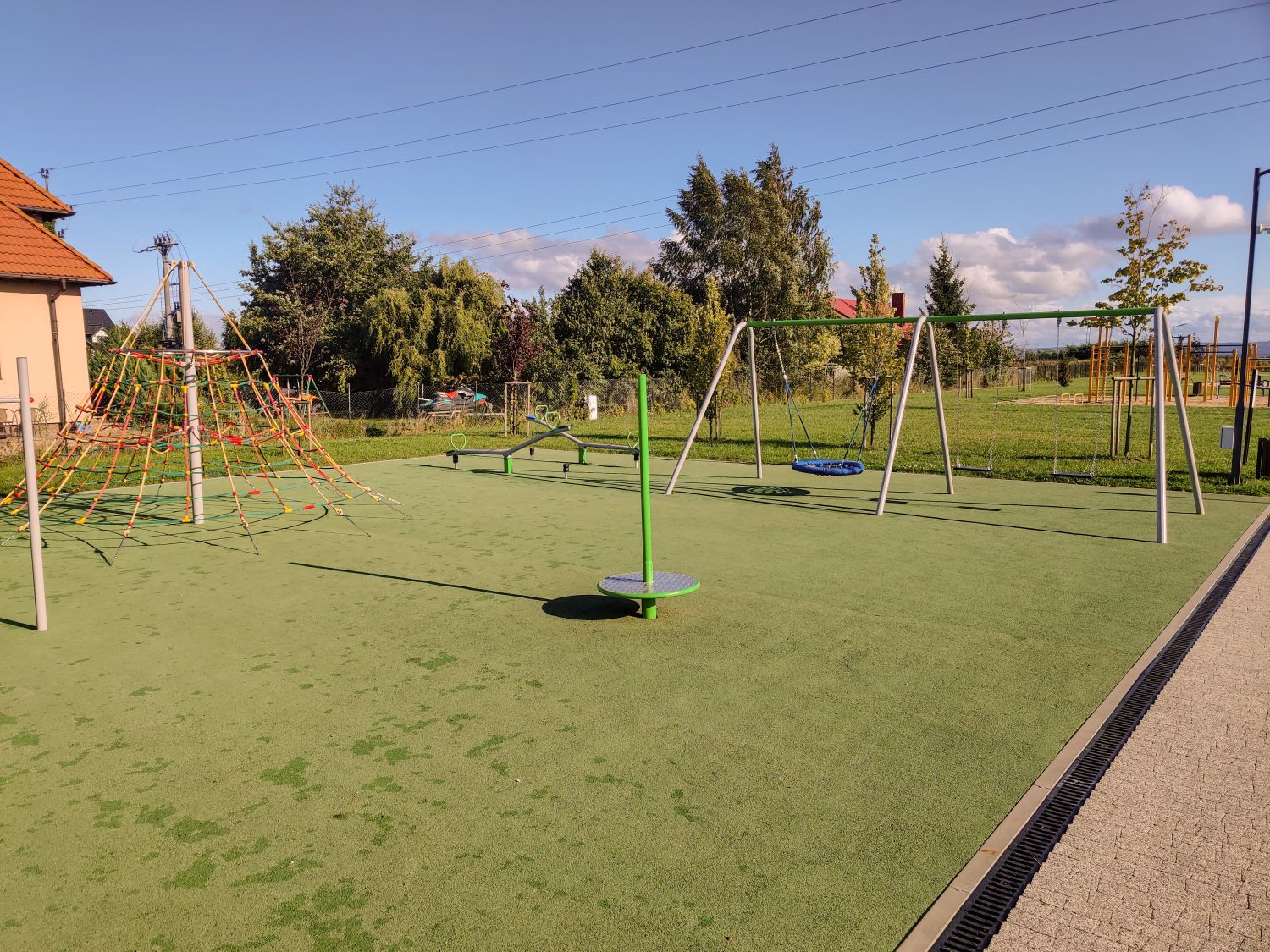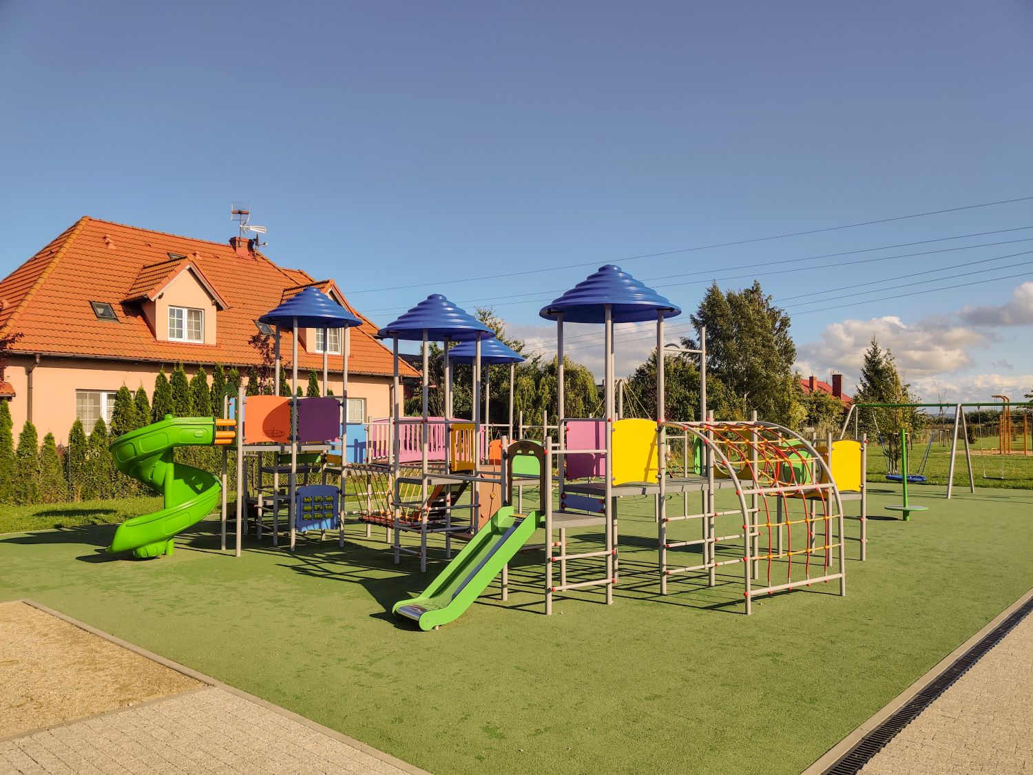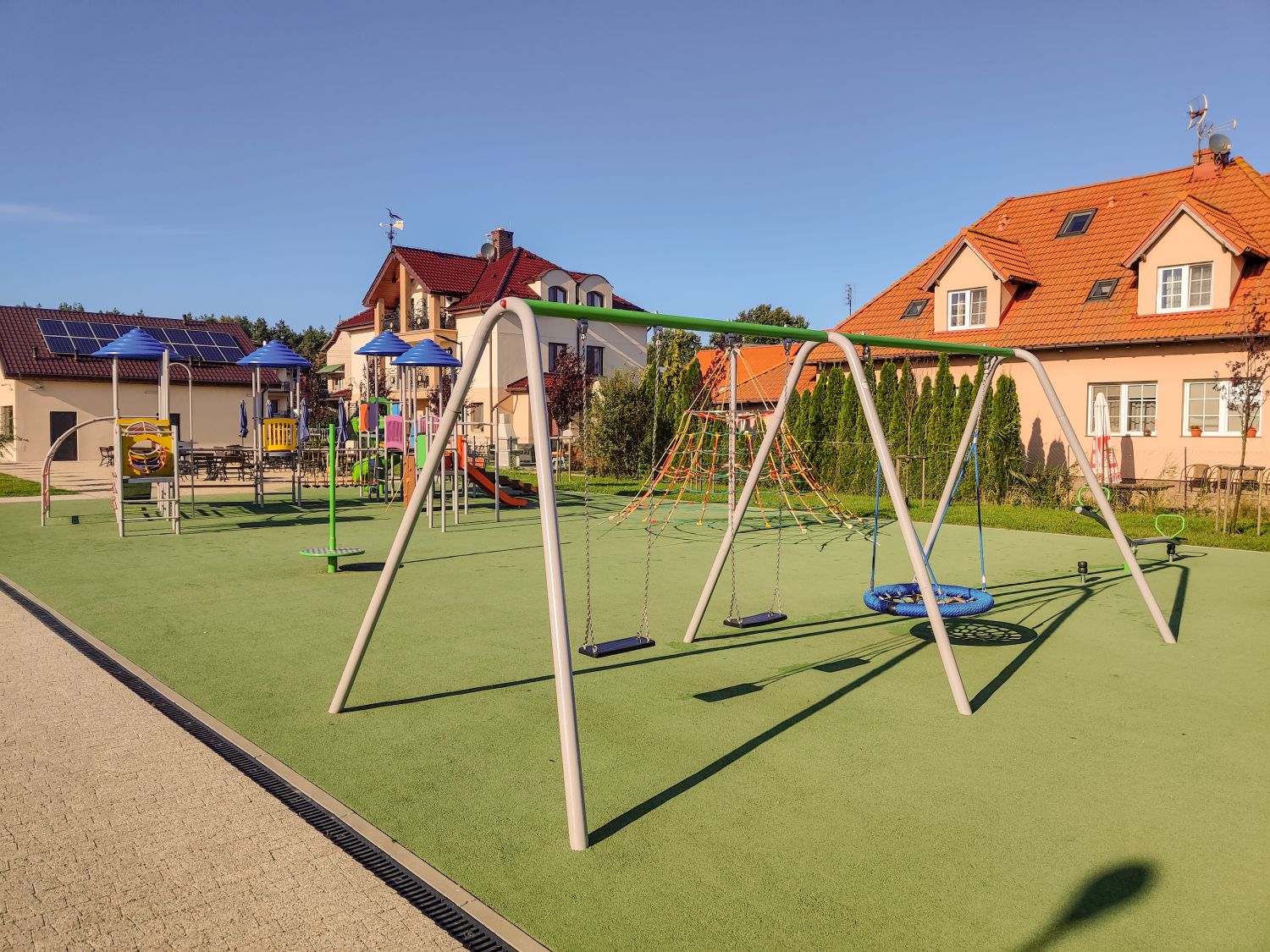 Na terenie znajdziemy również alejki z ławeczkami oraz dużą altanę grillową.